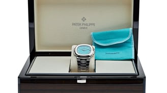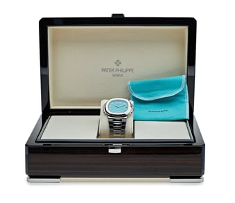 This limited edition watch celebrates the partnership between Patek Philippe and Tiffany & Co., featuring the iconic Tiffany blue dial and dual branding.