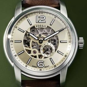 "Fossil Heritage Automatic ME3263 is a timeless leather-strap watch featuring automatic movement, a transparent case back, and vintage-inspired design, blending elegance and functionality for watch enthusiasts and collectors."