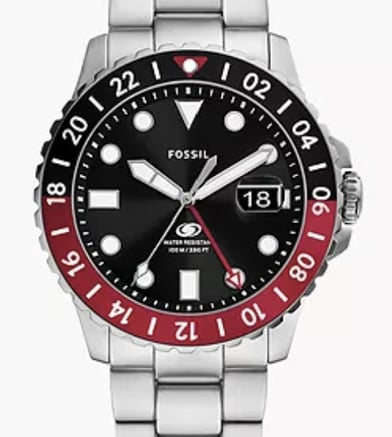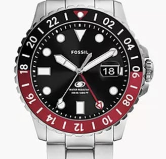 "Fossil Blue GMT FS6092 is a versatile stainless-steel watch with a dual-time GMT function, sleek design, and 100m water resistance, making it perfect for frequent travelers and style enthusiasts."