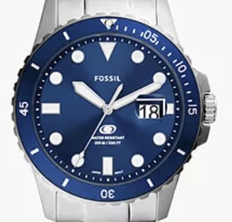 "Fossil Blue Dive FS6029 is a stylish stainless-steel dive watch with three-hand movement, a date display, and 100m water resistance, perfect for underwater adventures and everyday sophistication"