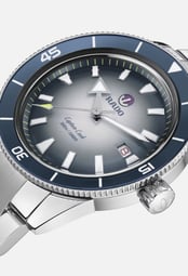 The striking gradient blue dial transitions seamlessly, evoking the ocean’s depths, while the sturdy stainless steel bracelet and bezel add timeless elegance to the design.