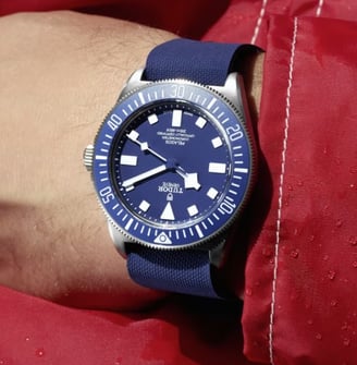 The watch complements casual and sporty attire. Its robust yet sleek design is perfect for adventure enthusiasts, divers, and anyone seeking a rugged, versatile timepiece.