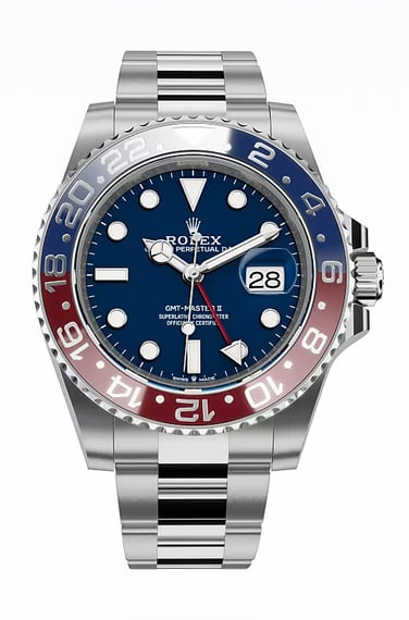 🎉 Fun Fact: The original GMT-Master was developed in collaboration with Pan Am Airlines in 1955 for pilots navigating different time zones.