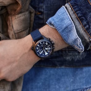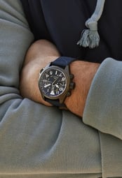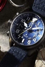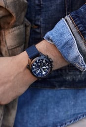 Combining a blue dial with a blue Cordura® ballistic fabric strap, the watch offers a cohesive and robust design tailored for durability and style.