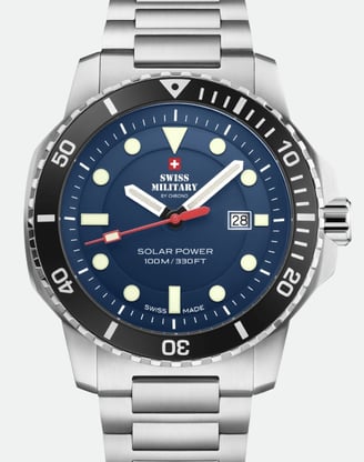 Combining durable materials, solar technology, and water resistance, this timepiece exemplifies Swiss Military's dedication to creating reliable and versatile sports watches.