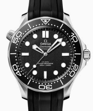 Featuring a wave-patterned black ceramic dial, a 42mm stainless steel case, and an iconic helium escape valve, this Seamaster blends elegance with diving functionality.